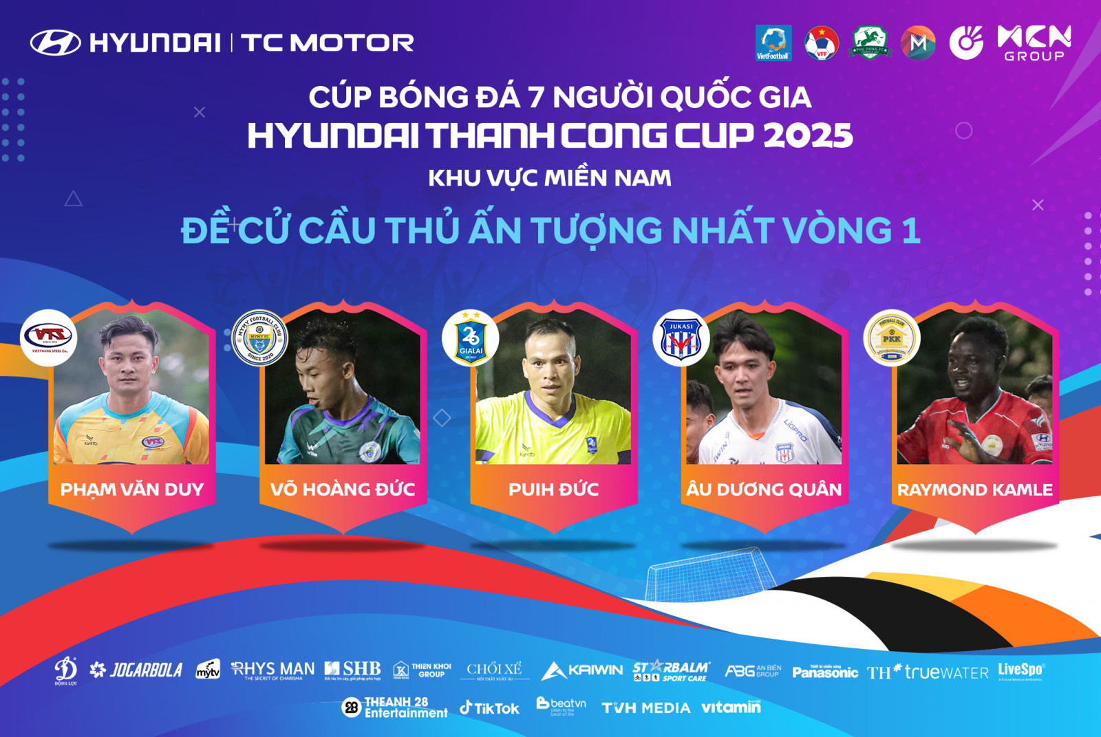 Bình chọn cầu thủ ấn tượng nhất vòng 1 Cúp bóng đá 7 người Quốc gia Hyundai Thành Công Cup 2025 - Khu vực miền Nam.