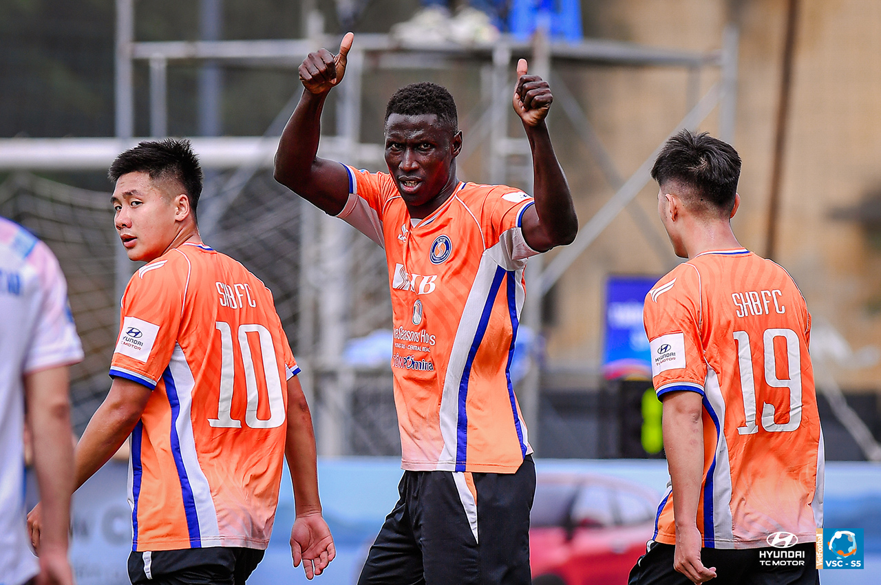Pape Omar tạo điểm nhấn ngày được đá chính khi ghi cú đúp vào lưới Thành Nam Star, góp công giúp SHB có chiến thắng 4-3.