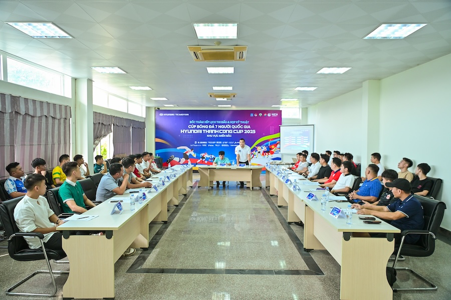Chiều ngày 9/10, Ban tổ chức Cúp bóng đá 7 người Quốc gia Hyundai Thành Công Cup 2025 (VSC-S5) – Khu vực miền Bắc và 20 đội tham dự đã tiến hành họp kỹ thuật và bốc thăm chia bảng.