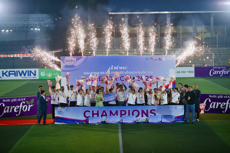 Giải bóng đá nữ 7 người Vô địch Quốc gia Carefor Cup 2025 (WVPL-S2) chính thức khép lại với chức vô địch thuộc về Sơn Toa Khang Cát và Đại học TDTT Bắc Ninh lần lượt ở hai hạng mục Queen và Princess.