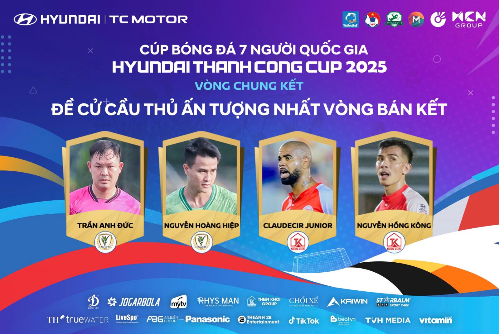 Bình chọn cầu thủ ấn tượng nhất Bán kết Vòng Chung kết Cúp bóng đá 7 người Quốc gia Hyundai Thành Công Cup 2025.
