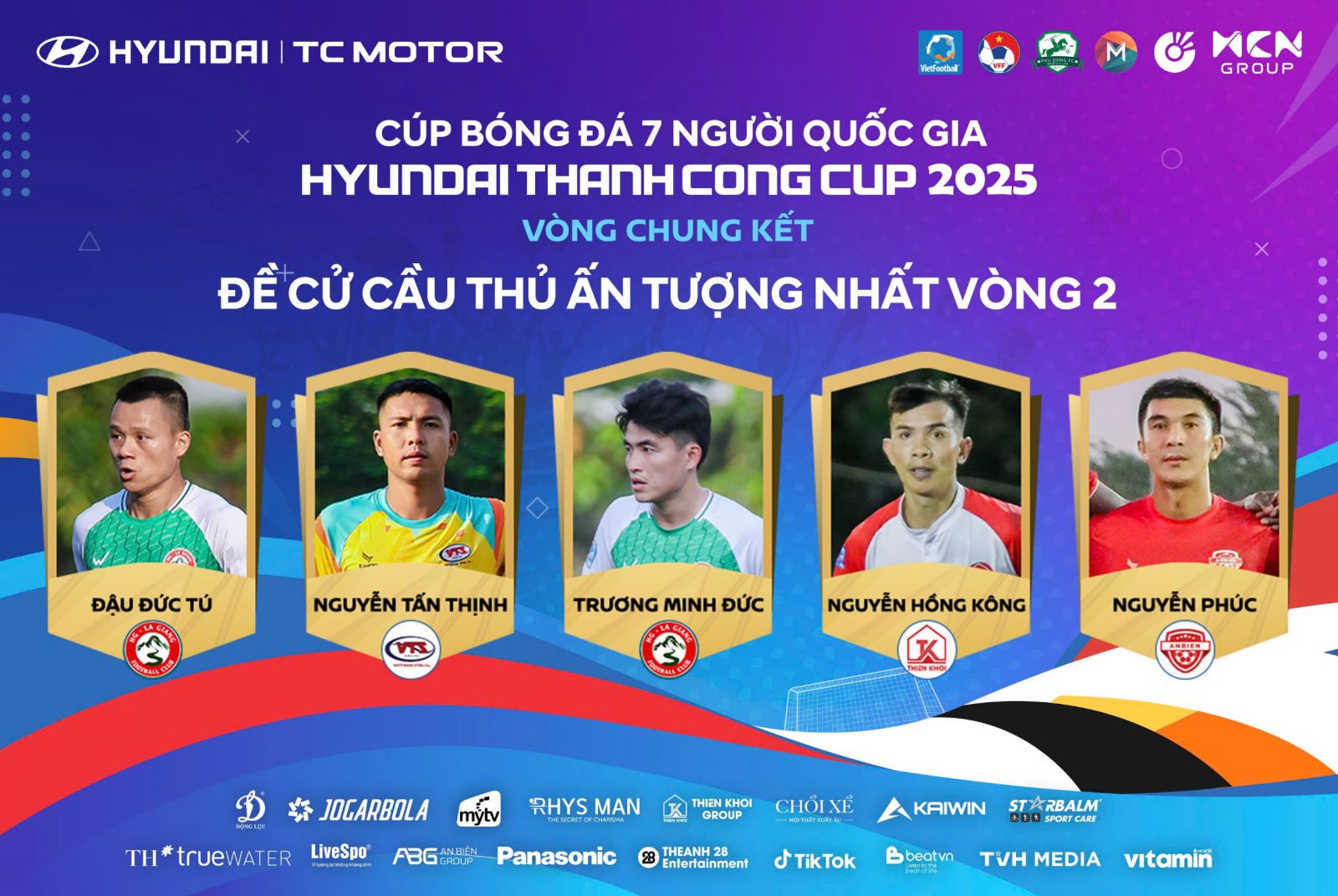 Bình chọn cầu thủ ấn tượng nhất vòng 2 Vòng Chung kết Cúp bóng đá 7 người Quốc gia Hyundai Thành Công Cup 2025.