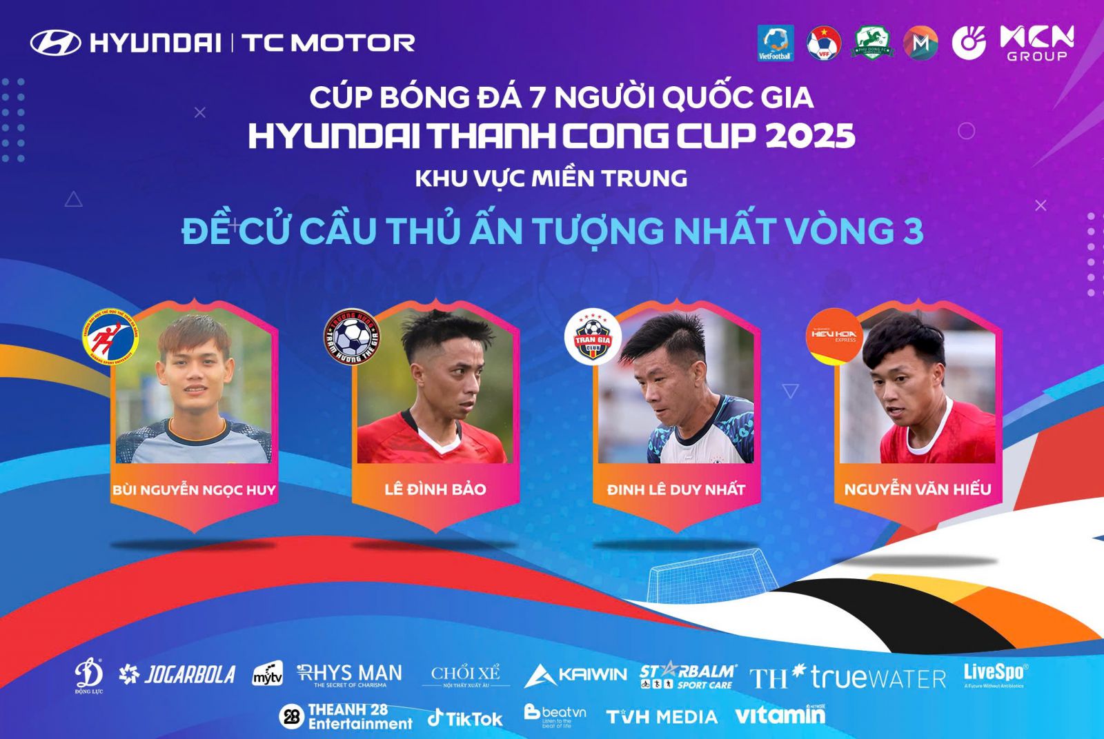 Bình chọn cầu thủ ấn tượng nhất vòng 3 Cúp bóng đá 7 người Quốc gia Hyundai Thành Công Cup 2025 - Khu vực miền Trung.