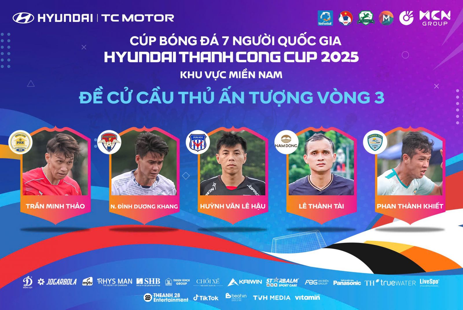 Bình chọn cầu thủ ấn tượng nhất vòng 3 Cúp bóng đá 7 người Quốc gia Hyundai Thành Công Cup 2025 - Khu vực miền Nam