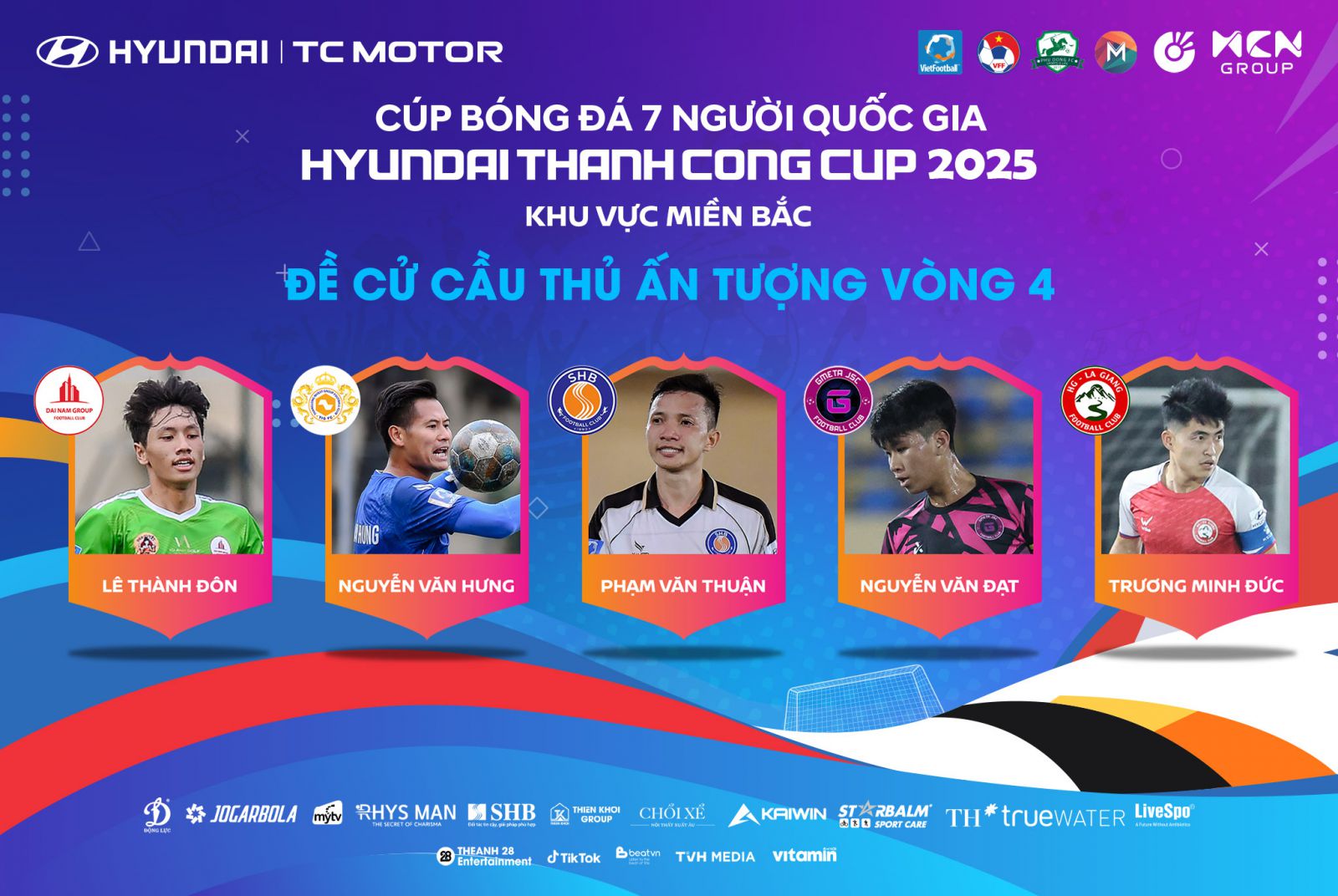 Bình chọn cầu thủ ấn tượng nhất vòng 3 Cúp bóng đá 7 người Quốc gia Hyundai Thành Công Cup 2025 - Khu vực miền Bắc.