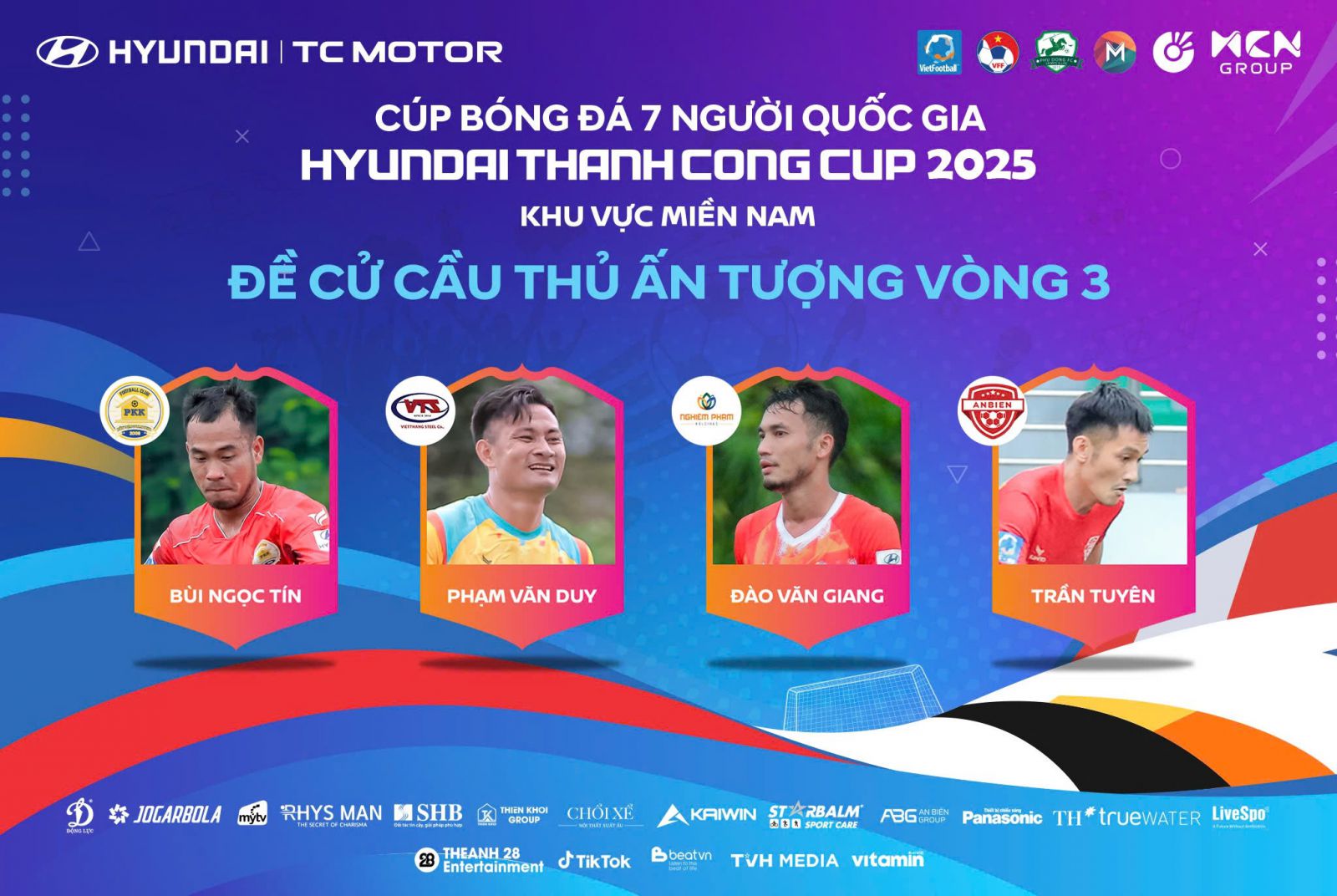 Bình chọn cầu thủ ấn tượng nhất vòng 3 Cúp bóng đá 7 người Quốc gia Hyundai Thành Công Cup 2025 - Khu vực miền Nam